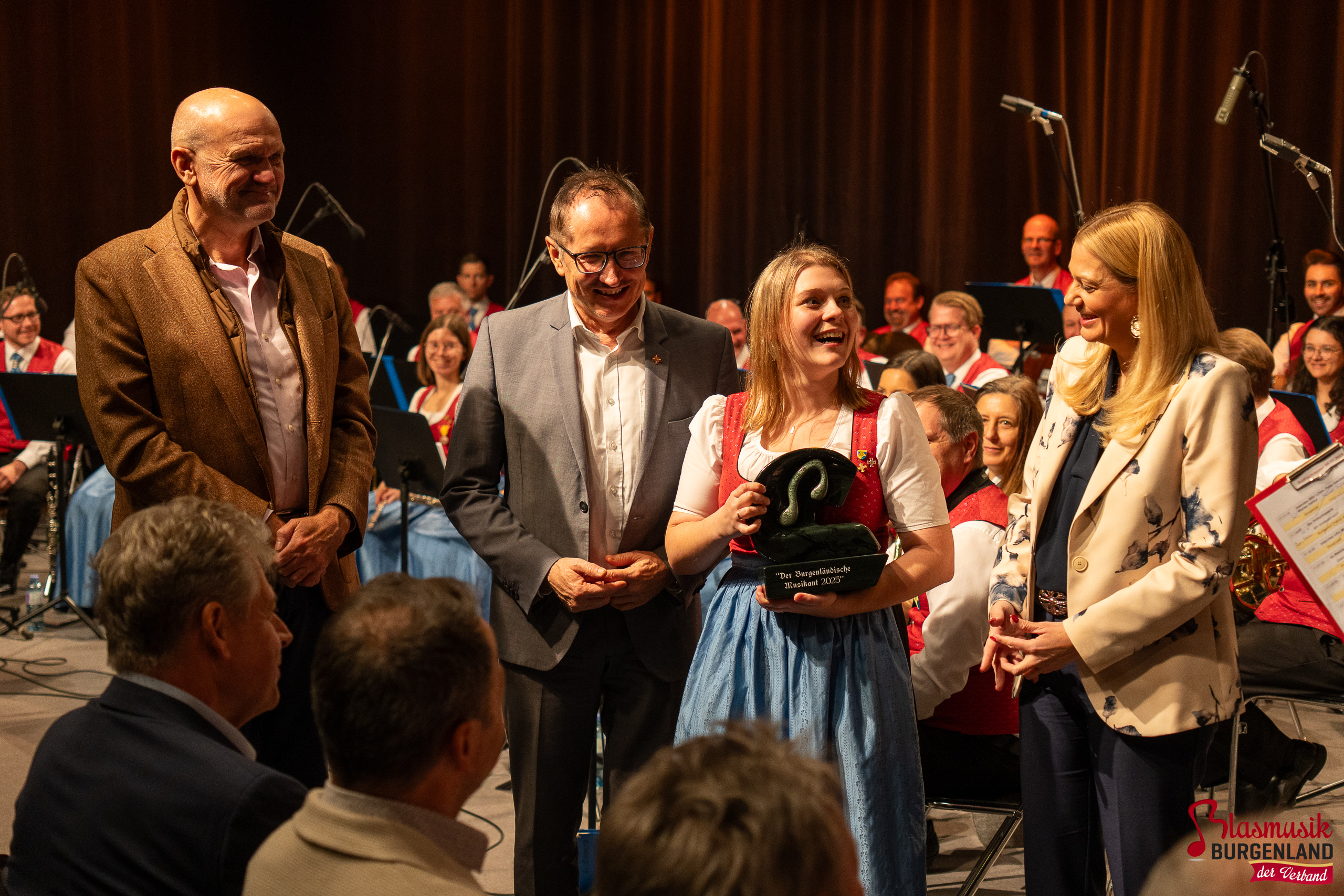 Im Rahmen des ORF-Frühschoppens im Landesstudio Eisenstadt wurde am Sonntag, dem 9. November 2025, der Ehrenpreis des Landesobmanns „Der Burgenländische Musikant 2025“ verliehen. Die Auszeichnung, eine rund acht Kilogramm schwere Skulptur aus Edelserpentin des Künstlers Franz Habetler, wurde von Landesrätin Daniela Winkler in Vertretung von Landeshauptmann Hans Peter Doskozil gemeinsam mit Landesobmann Peter Reichstädter überreicht.