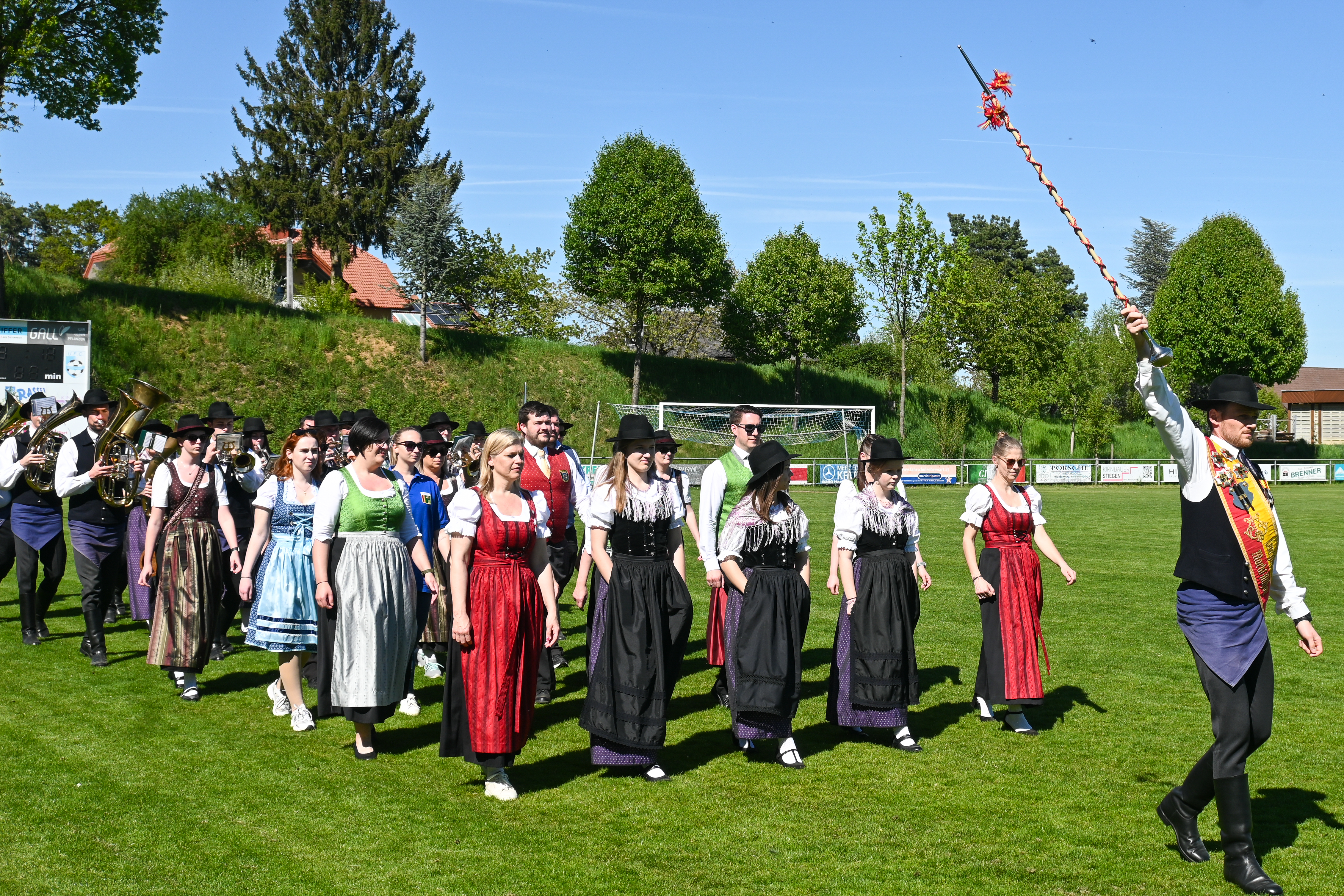 Nach dem gemeinsamen Mittagessen wurde am Nachmittag weiter trainiert. Ein besonderes Highlight war die musikalische Begleitung durch den Musikverein Trachtenkapelle Markt Allhau unter der Leitung von Stabführer DI Andreas Loschy. So konnten die erarbeiteten Inhalte direkt mit klingendem Spiel umgesetzt werden.