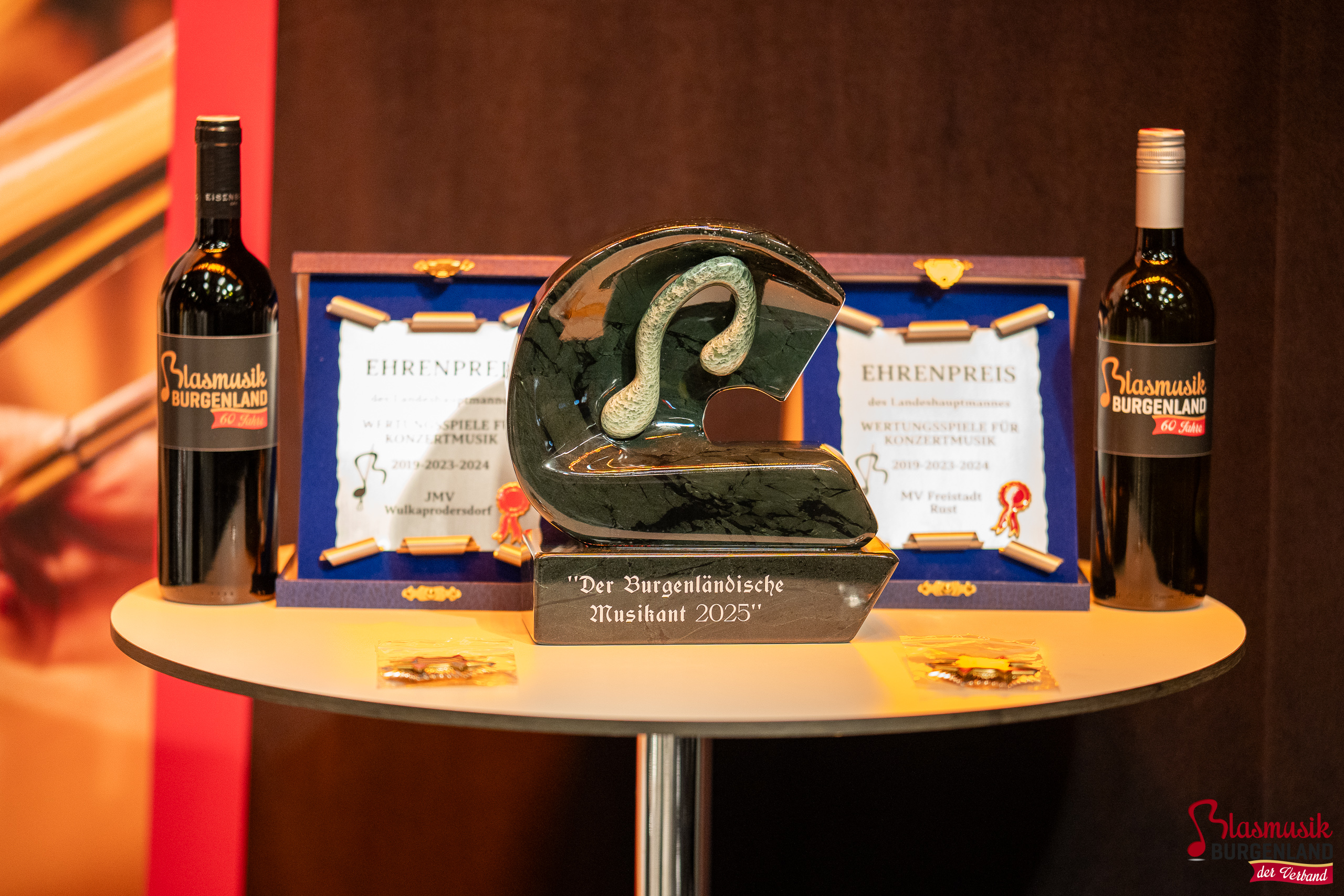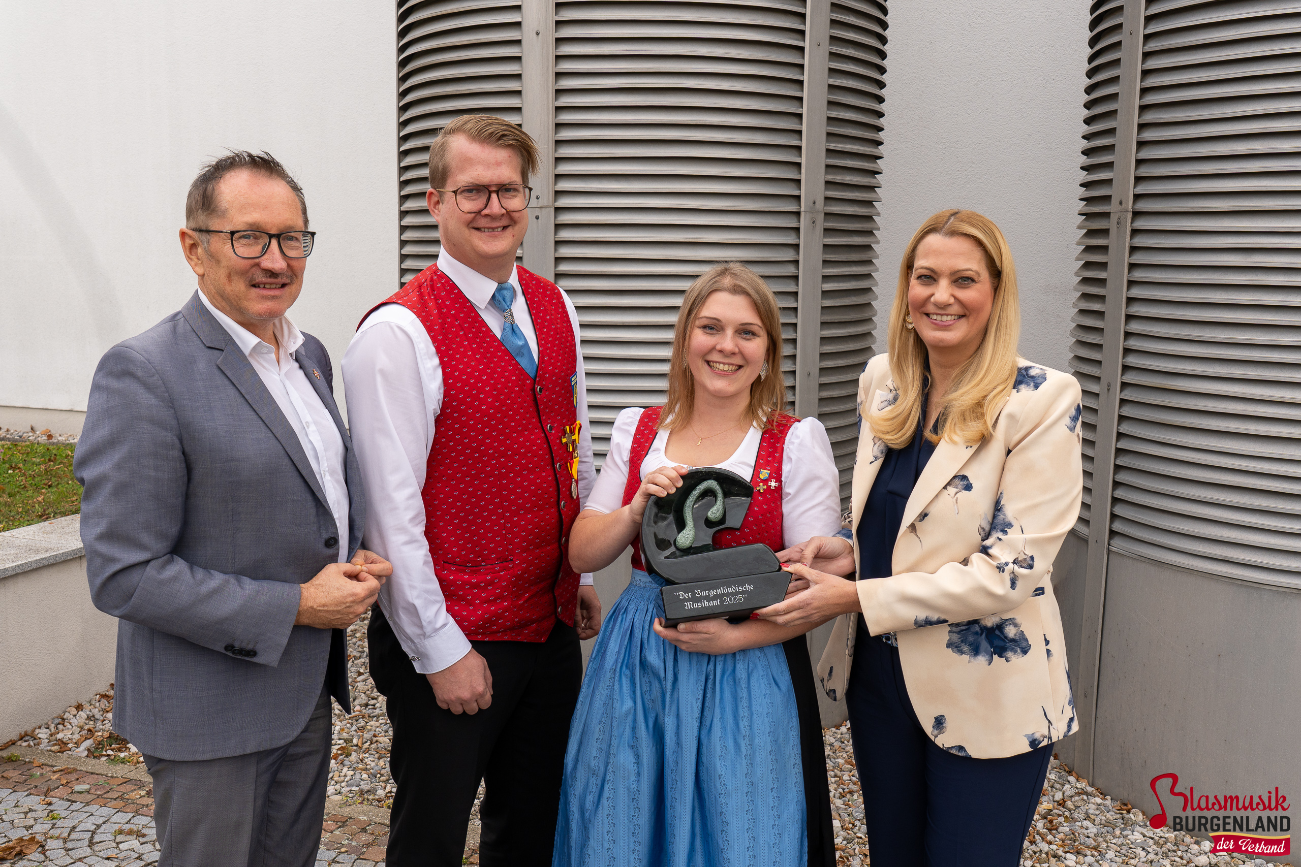 Im Rahmen des ORF-Frühschoppens im Landesstudio Eisenstadt wurde am Sonntag, dem 9. November 2025, der Ehrenpreis des Landesobmanns „Der Burgenländische Musikant 2025“ verliehen. Die Auszeichnung, eine rund acht Kilogramm schwere Skulptur aus Edelserpentin des Künstlers Franz Habetler, wurde von Landesrätin Daniela Winkler in Vertretung von Landeshauptmann Hans Peter Doskozil gemeinsam mit Landesobmann Peter Reichstädter überreicht.